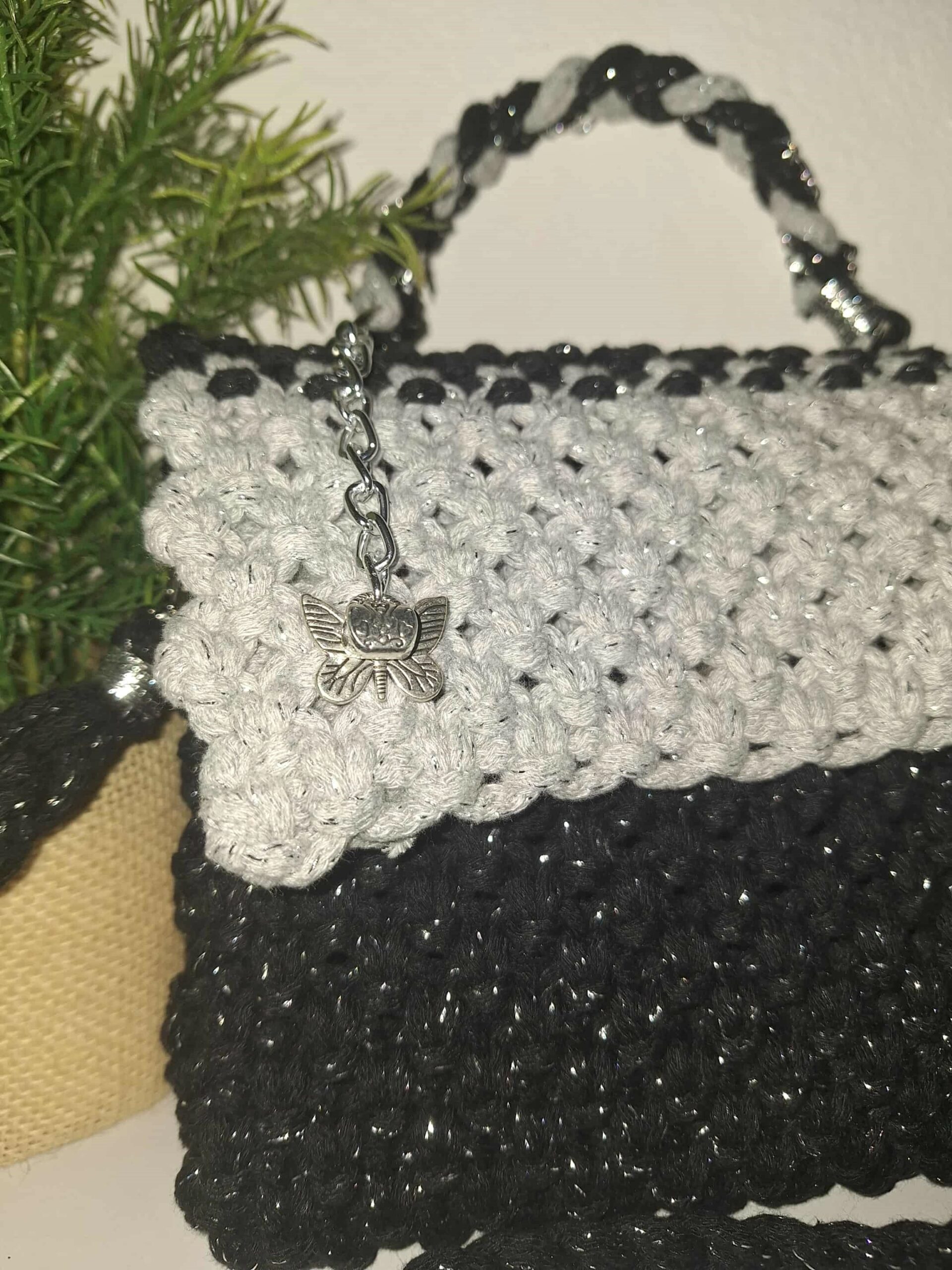 Mini Sac Éclat – Macramé & Chaînette brillante✨**