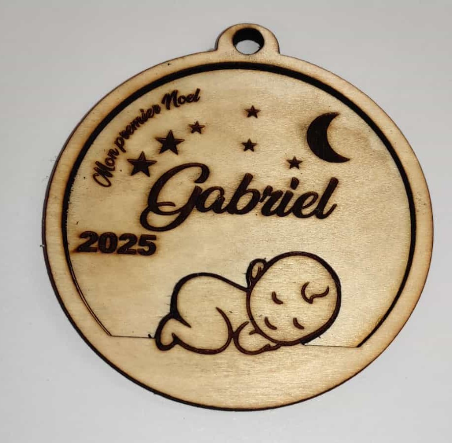 Son design fin et élégant met en valeur le premier Noel de votre enfant, accompagnée du prénom complet, et d’un adorable petit bébé au centre pour une ambiance festive et unique 🎅🌲 et un souvenir durable dans le temps