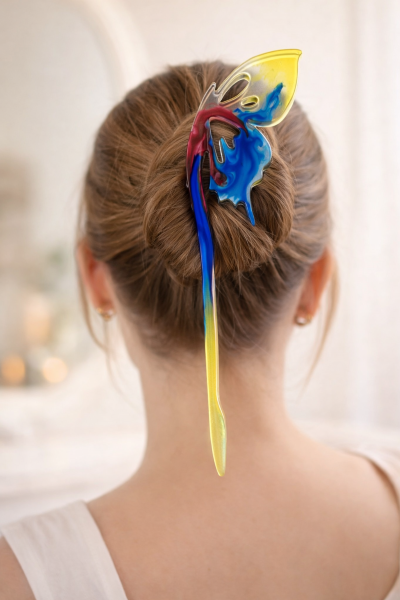 Apportez une touche de style et d’élégance à votre coiffure avec BunBloom, une baguette à chignon réalisée en résine époxy. À la fois pratique et tendance, elle permet de maintenir votre chignon tout en apportant une note originale et fun à votre look.