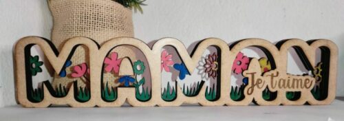 Offrez un cadeau rempli d’amour avec cette décoration à poser découpée au laser, mettant en valeur le mot « Maman » accompagné de l’inscription « je t’aime » 💌