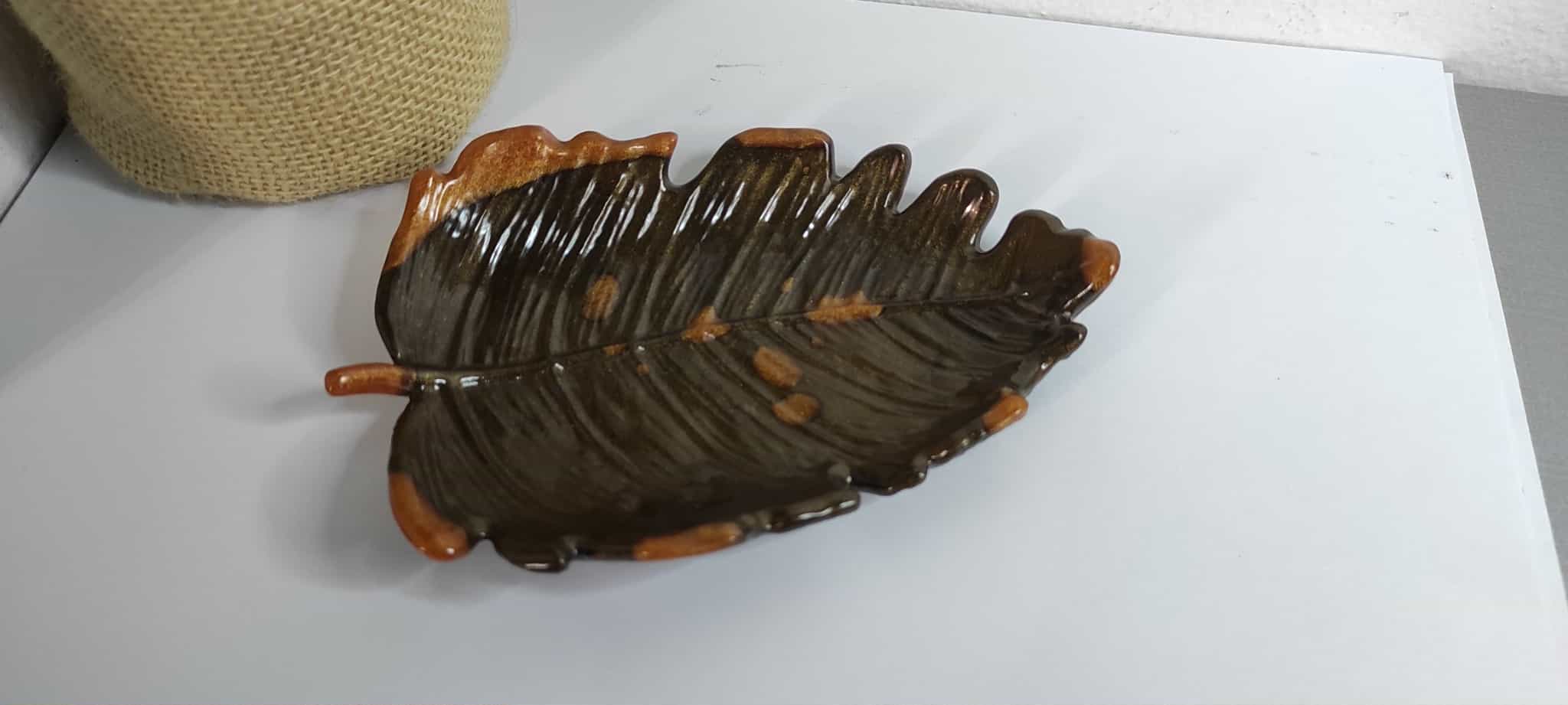 Laissez-vous séduire par ce vide-poche en forme de feuille, une pièce élégante et délicate mêlant cuivre étincelant, sur du marron qui apportent une touche de finesse 🌸✨