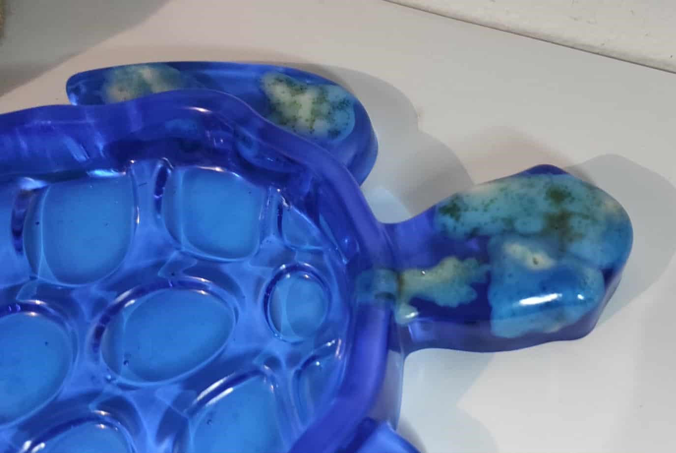 Réalisé en résine époxy bleue, il est sublimé par de véritables coquillages incrustés, pour un rendu naturel et élégant qui rappelle les vacances au bord de l’océan 🌴.